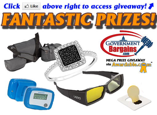 14 days left for a chance to win a Prize in the fantastic giveaway from GovernmentBargains.com: