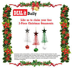 Fill out their Facebook form to get free 3-Piece Christmas Ornament Set:
