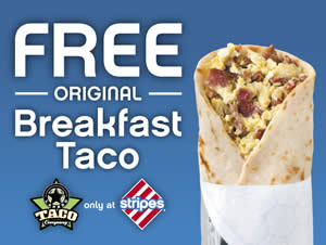 Print out this coupon to get free Breakfast Taco at Stripes Valid until January 25-26