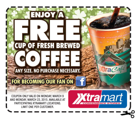 Print out this coupon to get free Coffee at Xtra Mart Valid until Mar 9 & 23