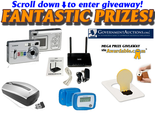 You only have 8 days left for a chance to win a Prize in the awesome giveaway from GovernmentAuctions.org: